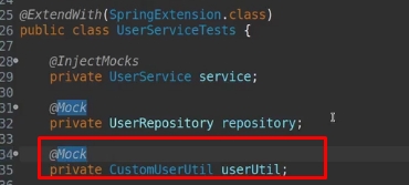 Precisamos mockar o CustomUserUtil criado anteriormente, para que possamos fazer o teste unitário.