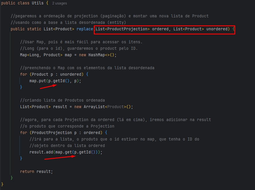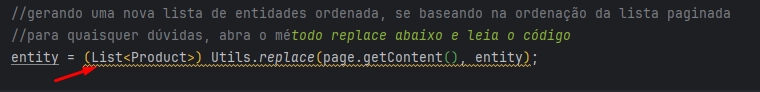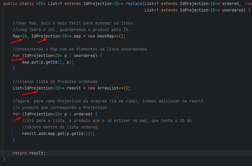 Na nomeação do método, passaremos o tipo genérico . E não será mais uma lista de Product, e sim uma lista de IdProjection. < Só isso, não iria funcionar, para que essa lista aceite como subtipo, uma lista de Produto, iremos utilizar o tipo curinga (? extends).