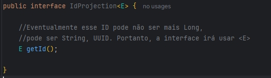 Agora, o nosso ProductProjection não terá mais um getId(). Ele irá herdar a interface acima.