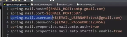 EmailController, com a função sendEmail, recebendo um EmailDTO (retorna noContent e void).
